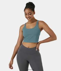 Halara נשים גופיית אימון Racerback עם צווארון U נמתח מוצק XX0PF1725 בגדים פעילים כחול בייבי בהיר