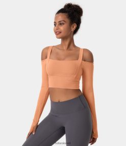 Halara נשים צוואר מרובע כתף קרה חור אגודל קצוץ ספורט טופ XX0PF1833 בגדים פעילים שטיפת משמש