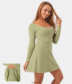 Halara נשים שמלת מיני טניס פעילה עם שרוול ארוך 2 ב-1 כיס XX0PF830 בגדים פעילים ירוק אזוב ערפילי