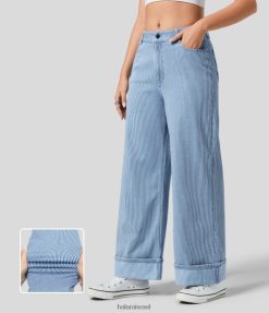 Halara נשים כיס צד עם שרוך מותן קסום עם רגל ישרה ופל ג’ינס סריג נמתח XX0PF1351 הַלבָּשָׁה וופל תכלת