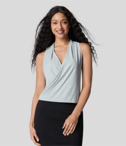 Halara נשים צווארון V מוצלב משופשף גופיית עבודה מגניבה ללא שרוולים XX0PF1629 הַלבָּשָׁה סומק כחול