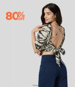Halara נשים חולצת כותנה קצוצה עם שרוולים נפוחים עם צוואר מרובע ללא גב. XX0PF1626 הַלבָּשָׁה זֶבּרָה