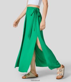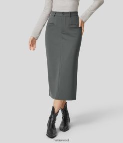 Halara נשים כיס צד משופשף בגזרה גבוהה מקסי קו חצאית כותנה מזדמנת XX0PF737 הַלבָּשָׁה שׁוֹשָׁן