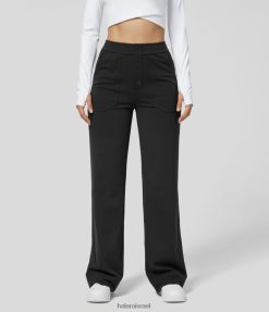 Halara נשים כפתור מותן גבוה עם כיסים מרובים מכנסיים קז’ואל עם רגל ישרה XX0PF454 הַלבָּשָׁה שָׁחוֹר