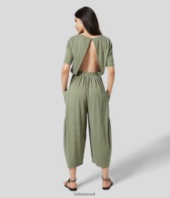 Halara נשים כיס צד משוכפך חסר גב סרבל נינוח XX0PF2077 הַלבָּשָׁה חוט פרחוני ירוק בהיר