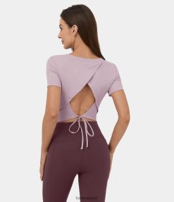 Halara נשים חולצת ספורט יוגה קצוצה עם שרוול קצר ללא גב XX0PF1921 בגדים פעילים ורוד סגול