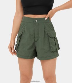 Halara נשים כיס צד רוכסן כפתור נמוך בעלייה רחבה מכנסי מטען מזדמנים XX0PF122 הַלבָּשָׁה ירוק תה עמוק