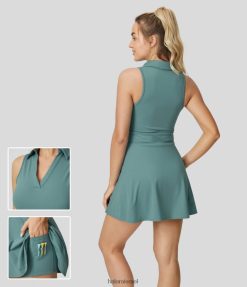 Halara נשים צווארון פולו אוורירי softlyzero כיס מגניב מגע מגניב מיני גולף אקטיבי שמלה-כיס גולף XX0PF901 בגדים פעילים כחול ציאן סלע