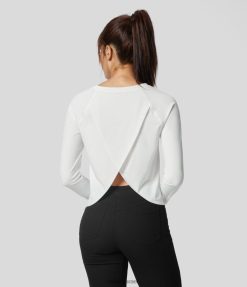 Halara נשים רשת קונטרסט מפוצלת מכפלת שרוול ארוך מגע מגניב יוגה ספורט טופ XX0PF1815 בגדים פעילים לבן