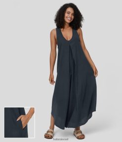 Halara נשים שמלת כותנה קז’ואל מקסי קז’ואלית עם צווארון ללא שרוולים XX0PF1207 הַלבָּשָׁה ליקוי חמה מוחלט