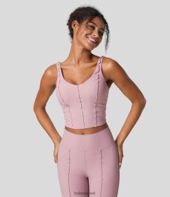 Halara נשים חולצת ספורט קז’ואל קצוצה עם צווארון U קצר XX0PF1893 בגדים פעילים סגול מולבן