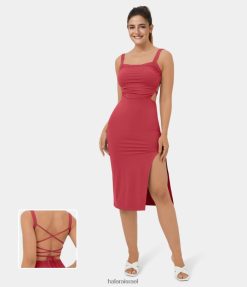 Halara נשים גזרה חסרת גב בכיס צד מעוות מפוצל שמלת מידי קז’ואל במידות גדולות XX0PF2156 הַלבָּשָׁה winterberry
