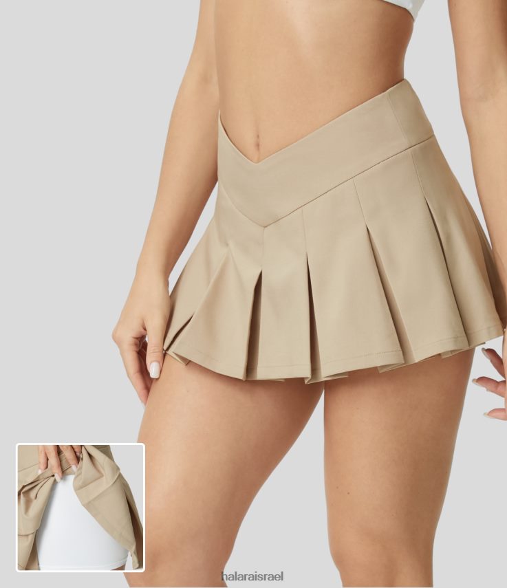 Halara נשים חצאית מיני קפלים 2 ב-1 רוכסן בלתי נראה בעליה בינונית בצורת V XX0PF599 הַלבָּשָׁה צַדֶפֶת