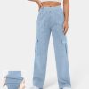 Halara נשים כיסי כפתור קסום באמצע העלייה בגזרת ג’ינס קז’ואל סריג נמתח XX0PF107 הַלבָּשָׁה ג’ינס כחול אגם