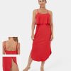 Halara נשים כיס צדדי ללא שרוולים עם צווארון עגול חתוך מכפלת מעוקלת שמלת מידי קז’ואל בחתיכה אחת XX0PF1232 הַלבָּשָׁה קפלת זית