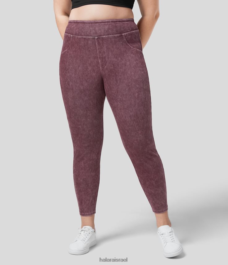 Halara נשים כיס צד אחורי בעל מותן גבוה קסום ג’ינס סריג נמתח צבעוני קז’ואל 7/8 חותלות במידות גדולות XX0PF1379 הַלבָּשָׁה יין ווינדזור דנים מכובס
