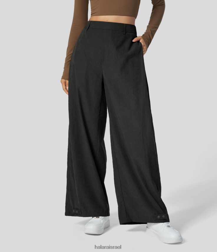 Halara נשים כיס צד עם מותן גבוה כפתור מתכוונן מכפלת הרמון טיולים XX0PF54 הַלבָּשָׁה שָׁחוֹר
