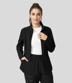 Halara נשים כפתור שרוך עם קפוצ’ון כיס צדדי משובץ צמר קז’ואל XX0PF2036 הַלבָּשָׁה ריבוע אדום יין