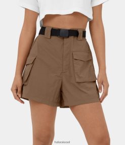 Halara נשים מכנסי מטען מזדמנים 4 אינץ’ עם כפתור חגורת מותן גבוה XX0PF262 בגדים פעילים אגוז