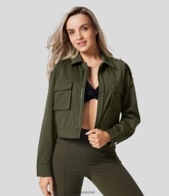 Halara נשים מעיל קז’ואל קז’ואל עם רוכסן ברדס עם כיס כתף שנפל XX0PF2052 הַלבָּשָׁה ירוק וילון עמוק