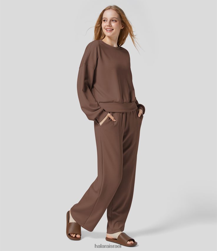 Halara נשים סווטשירט ספורט קז’ואלי בהתאמה רופפת בכתף ​​עם צוואר עגול XX0PF2016 בגדים פעילים מוּסטָנג