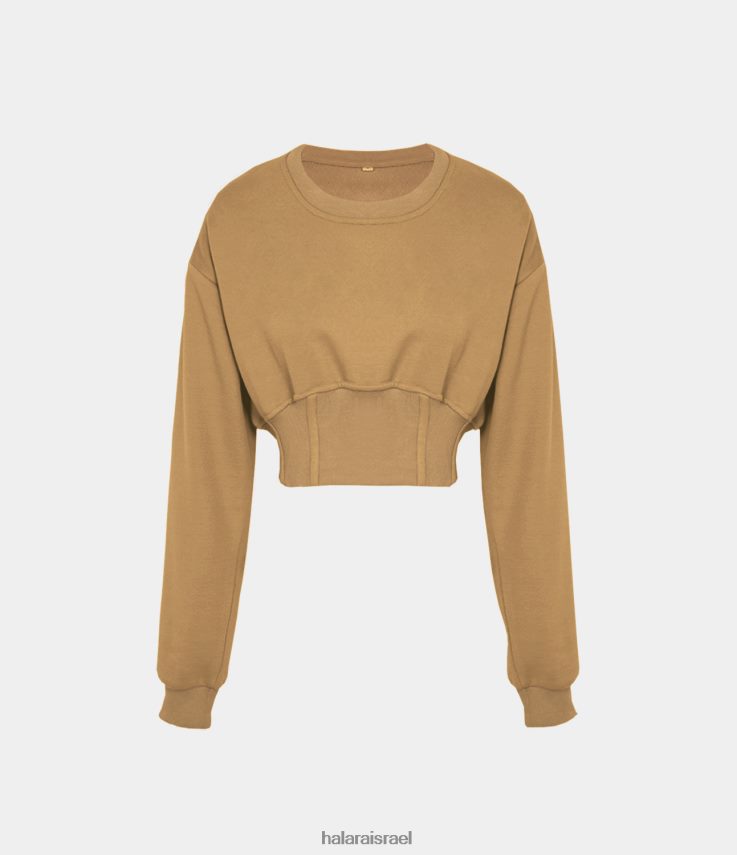 Halara נשים צווארון סירה שרוול בישוף גולמי סווטשירט קז’ואל XX0PF1999 הַלבָּשָׁה אפור כהה מנומר