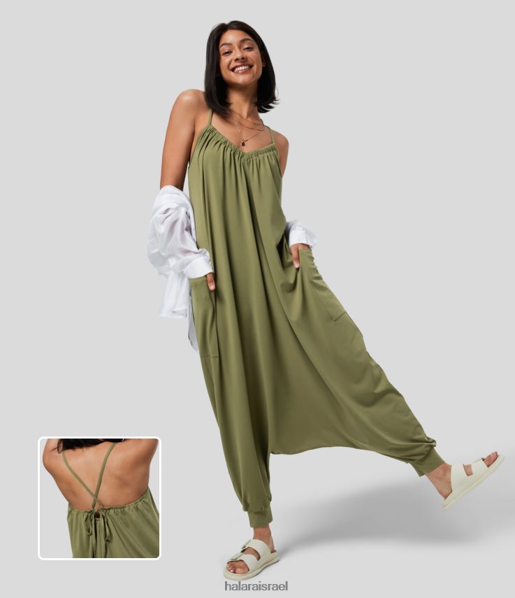 Halara נשים סרבל קז’ואל של הרמון כיס צדדי ללא גב XX0PF2111 הַלבָּשָׁה קפלת זית