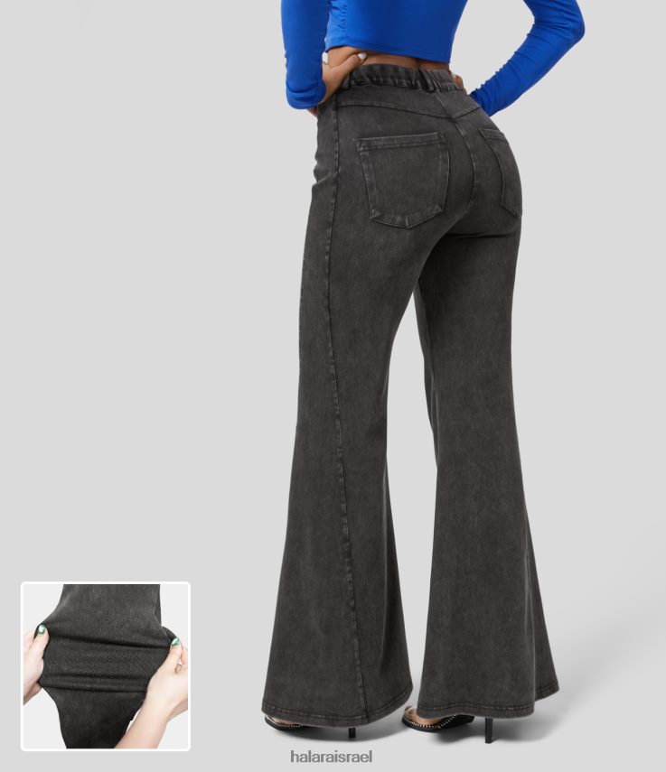 Halara נשים קסם עם מותניים מרובים כיסים שטופים סריג נמתח קז’ואל ג’ינס סופר מתלקח XX0PF329 הַלבָּשָׁה מְקוֹרִי