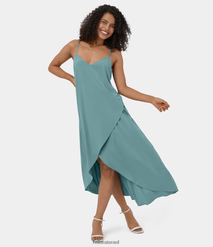 Halara נשים רצועה מתכווננת בריזה עם צוואר V ללא גב גב גב אסימטרי מוצלב מכפלת זורחת מקסי שמלת קז’ואל מהירה יבשה XX0PF1167 הַלבָּשָׁה כחול מינרלי