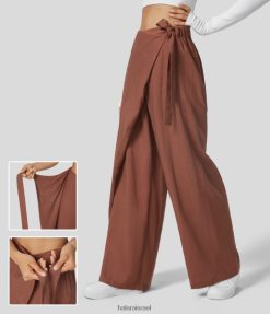 Halara נשים שרוולים מוצלבים עם כובע צווארון V חולצה מוצקה מוצקה XX0PF2144 הַלבָּשָׁה סירופ מייפל