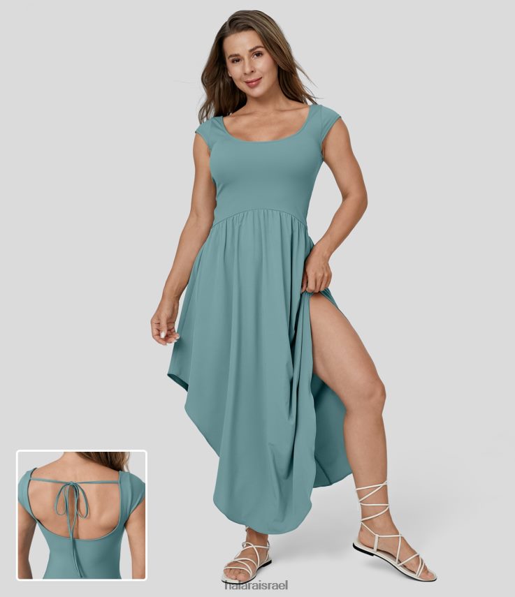 - עיצוב שרוול כובע קטן מכסה את אזור הכתפיים.