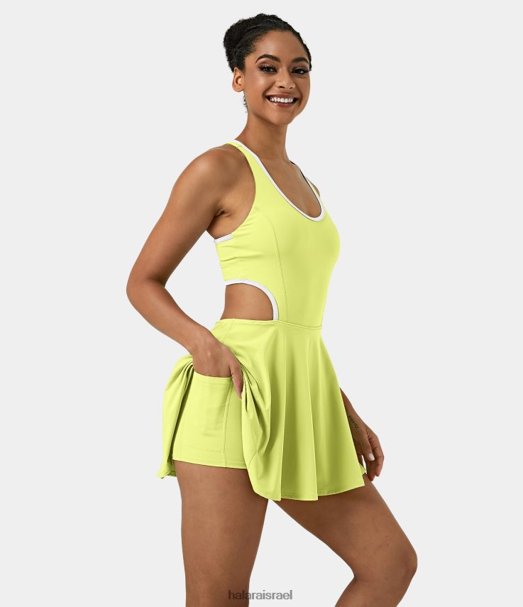 Halara נשים softlyzero אוורירית חסרת גב בגזרת 2 ב-1 כיס מגניב מיני טניס אקטיבי שמלה אקטיבית XX0PF938 בגדים פעילים ירוק צהוב עדין