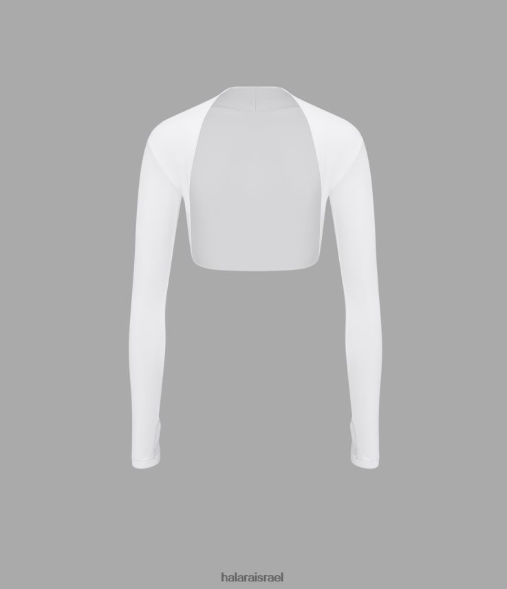 Halara נשים softlyzero אוורירי חור אגודל מוצק שרוול ארוך קצוץ מגע מגניב גולף ספורט כתפיים XX0PF1800 בגדים פעילים לבן