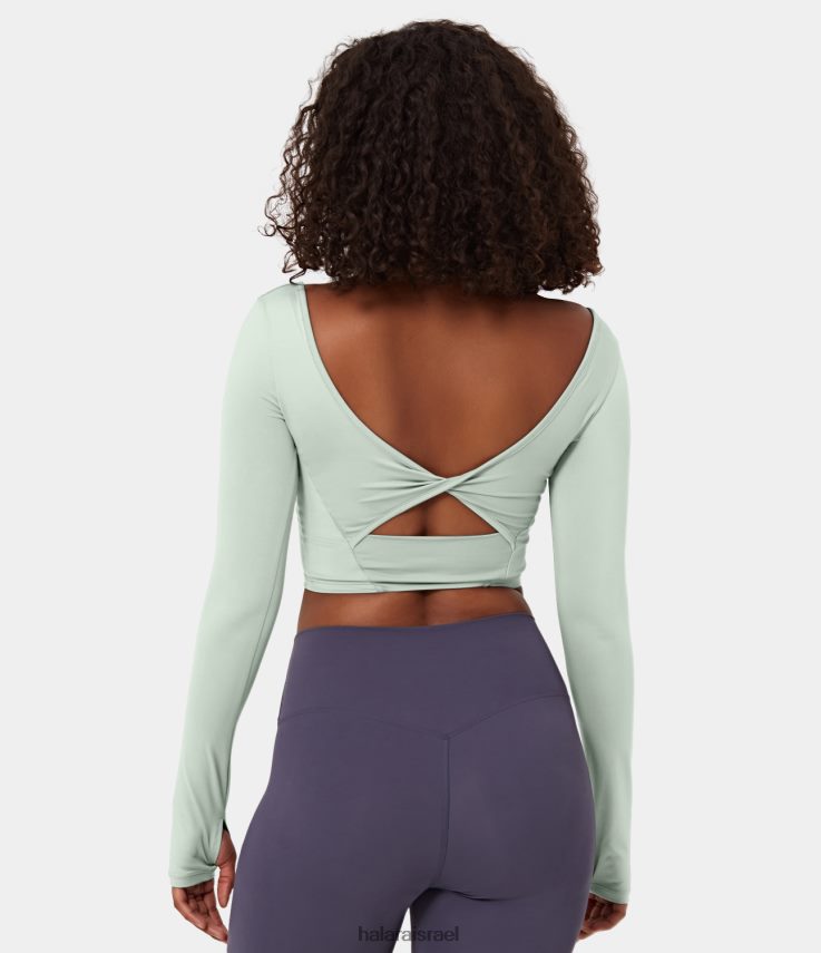 Halara נשים softlyzero אוורירי צוואר ללא גב חתוך חור מעוות באגודל חתוך מגע מגניב יוגה ספורט טופ XX0PF1850 בגדים פעילים הירקן הכי הוגן