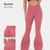 Halara נשים softlyzero דמוי עור עם מותניים מוצלבים באורך מלא באורך מלא חותלות יוגה נמתחות בהדפס נייר כסף XX0PF339 בגדים פעילים כסף שחור מבריק
