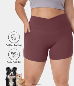 Halara נשים softlyzero עם מותן מוצלב כיס צד יוגה במידות גדולות מכנסי אופנוענים 7 אינץ’ XX0PF1289 תחתונים מהגוני אדום