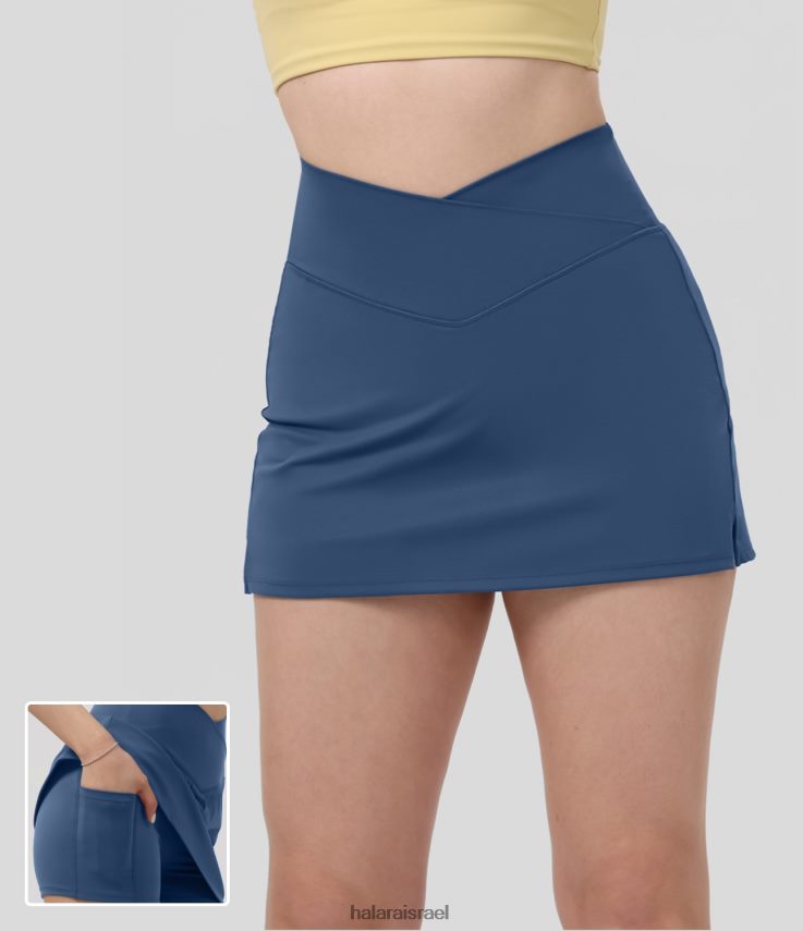Halara נשים softlyzero קטיפה מוצלבת גבוהה מכפלת מפוצלת 2 ב-1 כיס צד קו חצאית מיני קז’ואל XX0PF680 בגדים פעילים טורקיז כהה