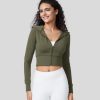 Halara נשים softlyzero קטיפה קפוצ’ון רוכסן צד כיס חור אגודל קצוץ קז’ואל ז’קט קז’ואל XX0PF1975 בגדים פעילים אפור פלדה